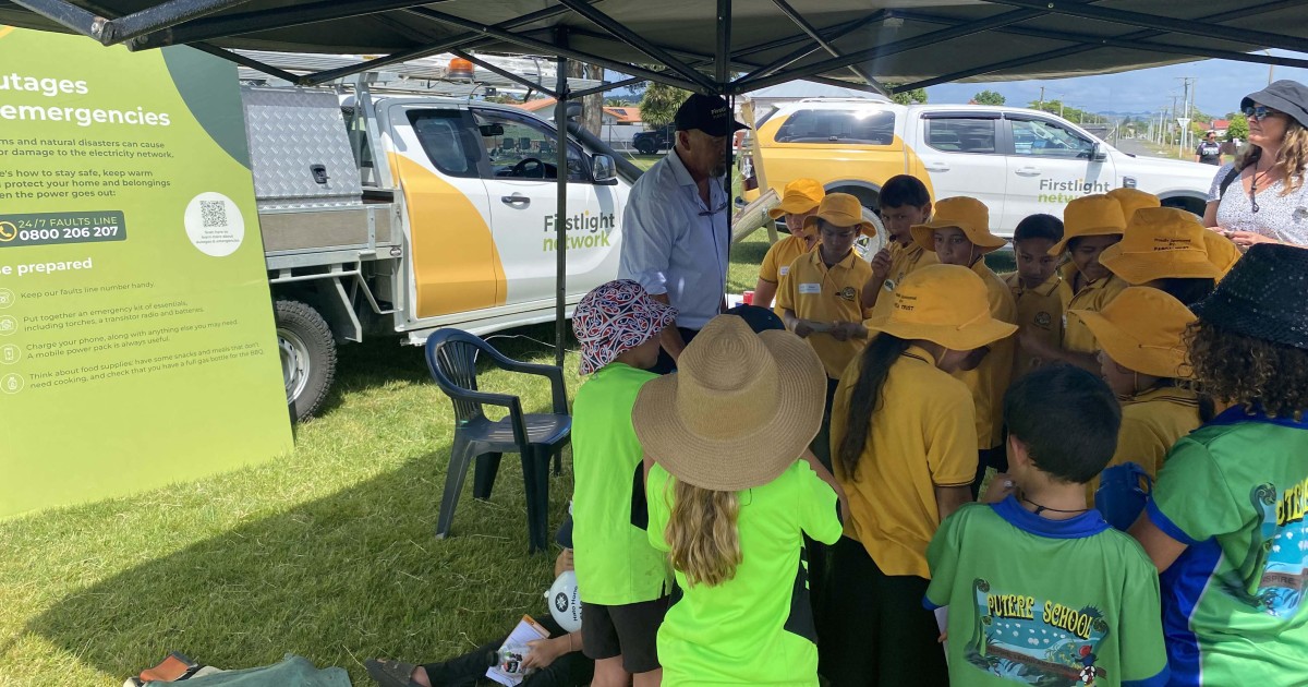 Dean McGregor and Jamie Aitken from Firstlight Network went along on the day and held interactive sessions teaching kids about how to stay safe around electricity. Local Tamariki (children) learnt how to recognise and respond to fallen or broken power lines by staying at least 10 metres away and what to do if they come across a damaged or open pillar box, including keeping clear and calling the Firstlight Network faults line on 0800 206 207. The sessions emphasised treating all lines as live and understanding that quick, calm decisions can prevent serious harm.